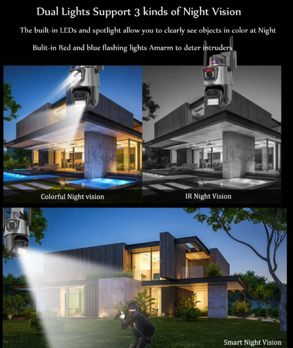Two Lens: 3.6mm + 3.6mm Lens, Alarm Siren
