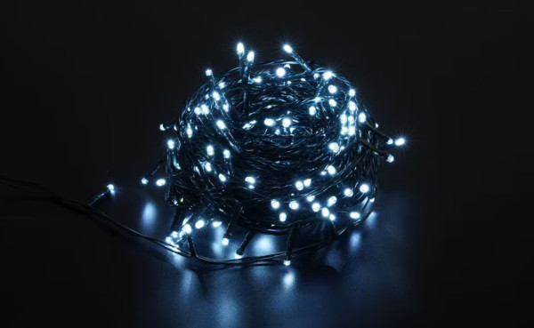 - Svetlosni niz je opremljen zelenim kabelom dužine 10 metara, na koji je postavljeno ukupno 100 LED dioda na svakih 10 centimetara